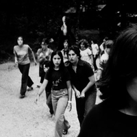 The original post includes two black and white images of groups of children to which the creator photoshopped a tall, thin, spectral figure wearing a black suit and added text, supposedly from witnesses, describing the abductions of the groups of children and giving the character the name The Slender Man.